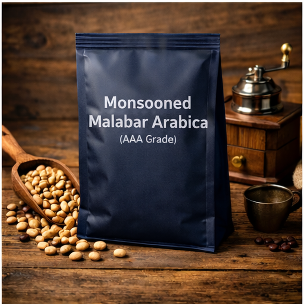 “A coffee unlike any other in the world. These beans are exposed to the humid monsoon winds of the Malabar Coast for months, causing them to swell and lose their acidity. The result is a cup with an unmatched heavy body, a mellow straw-colored hue, and deep, earthy notes of spice and dark cocoa.”